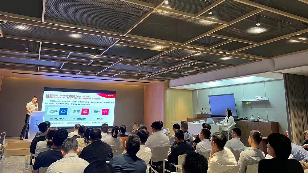 東方雨虹工建集團江蘇公司總工程師徐方賓作《建筑底板防水新材料應用分析》主題分享,他圍繞《建筑與市政工程防水通用規(guī)范》,系統(tǒng)分析底板HDPE、底板R類橡膠卷材、底板PY類瀝青卷材及底板其他類卷材預鋪反粘應用的方案及優(yōu)劣勢。他強調(diào),通過改進防水材料的抗穿刺、抗沖擊等性能及防水施工工法,可以去掉不必要的結(jié)構(gòu)層次,增加防水層的可靠性。